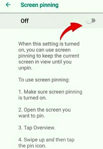 Step1) Bilbila keessan keessaa Setting isaa filadhaa tuqaa! Itti aansuun security and location filadhaa, itti fufee screen pinning kan jedhu ON godhaa.